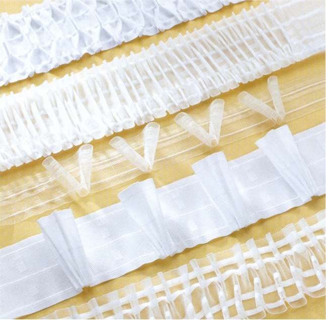Тесьму для штор можно встретить в продаже шириной от 2,5 до 10 см. Чаще всего используется бейка шириной 2,5 — 6 см.