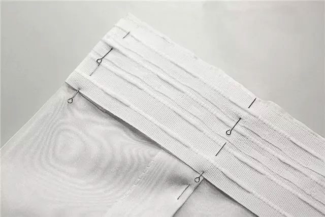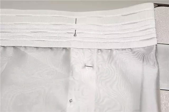 - Зафиксируйте шторную ленту на тюля с помощью булавок.
