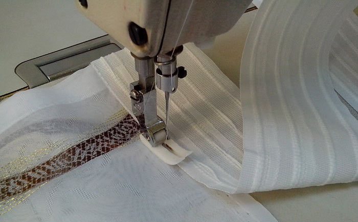 - Ленту в момент шитья, как и тюль, держите в натянутом состоянии.