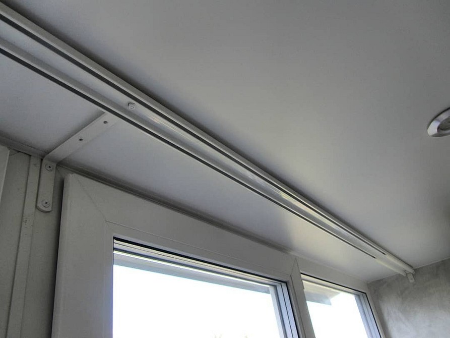 Карниз, который часто выбирают для установки на балкон, объединённый с кухней или комнатой. Такой выбор обусловлен прочным металлом конструкции и качественным защитным покрытием.