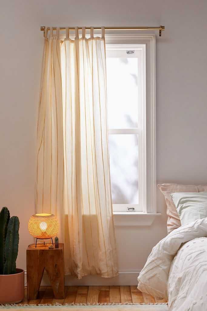 Классические шторы из ткани делайте с подкладкой. Это позволит сделать занавески объемными, закроет окна от света и обеспечит конфиденциальность. В маленькой спальне лучше выглядят прозрачные шторы. Чтобы уменьшить количество света, их совмещают с рулонными шторами.