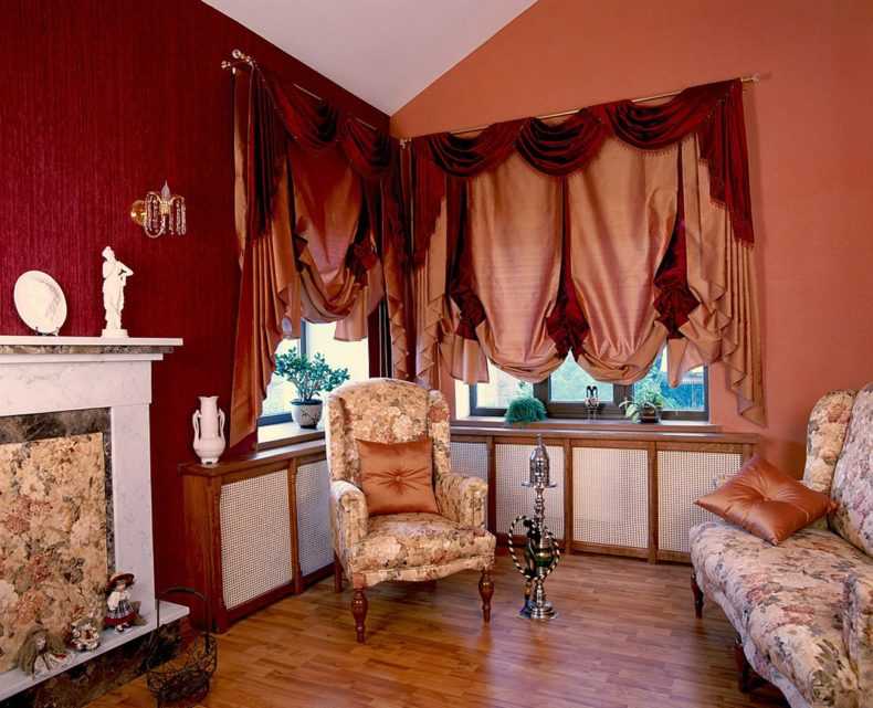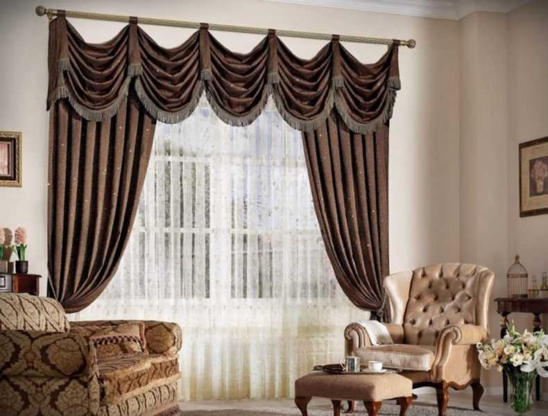 Варианты дизайна штор с ламбрекенами для зала – фото