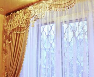 Оконную композицию украсит стрельчатая, килевидная, трехлопастная, пятилистная или асимметричная арка. Дополнят ее бахрома, тесьма, вышивки, оборки, воланы, кисти и другие элементы. Это уместно, если комната оформлена в классическом или другом, богатом декором, стиле. С другой стороны, контрастирующее с обстановкой оформление также приемлемо.