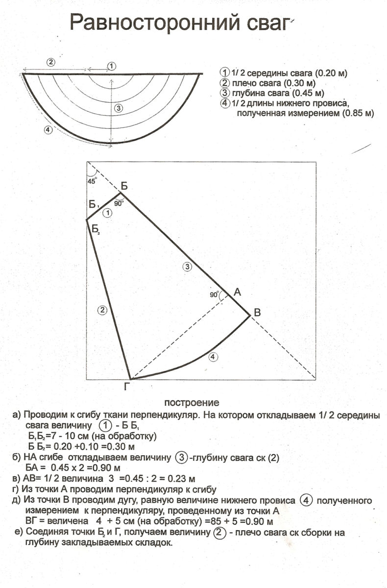 Припуски могут быть различными. Это зависит от деталей. Например, для свага на ватмане рисуют половину круга и добавляют драпировки, при этом высчитывая нужный метраж.