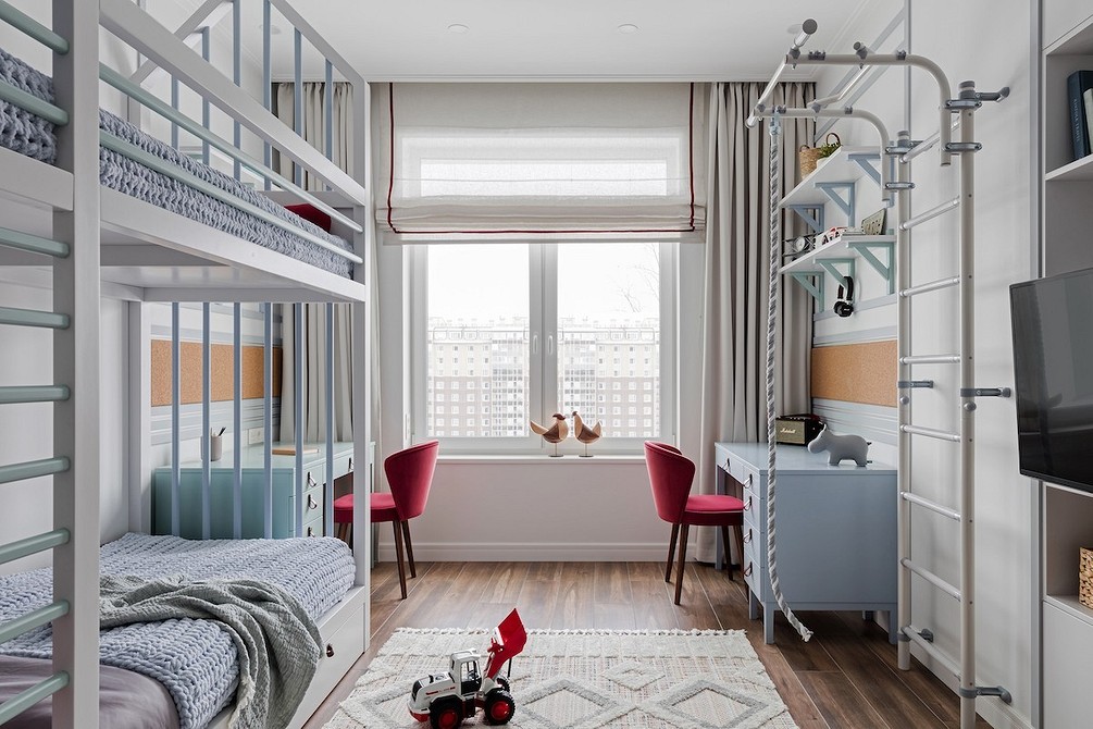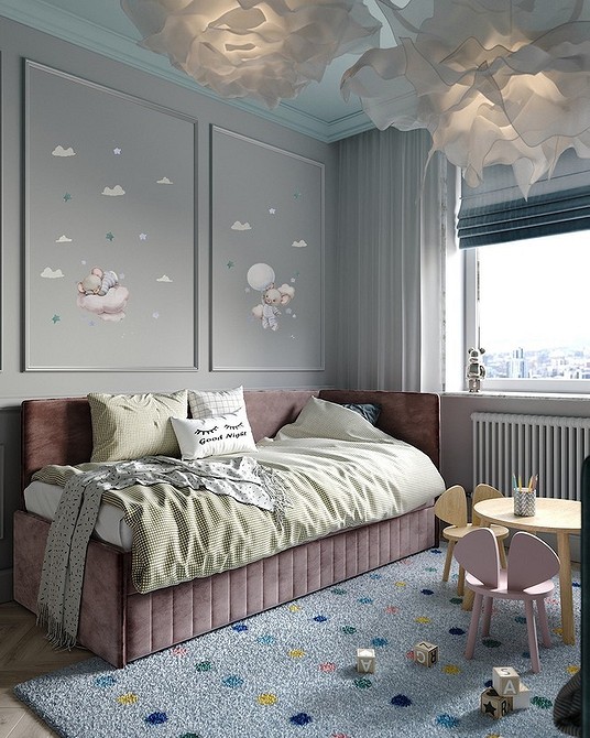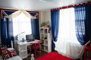 - В детской часто используется яркий текстиль (натуральные, дышащие ткани: лен, хлопок). Рисунок на занавесках может быть любой, главное, чтобы он нравился ребенку.