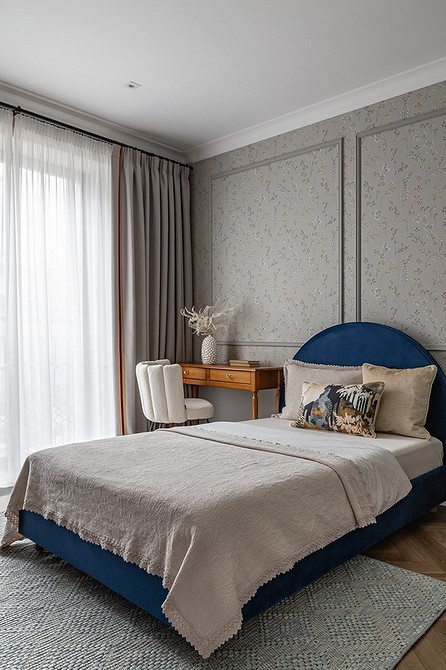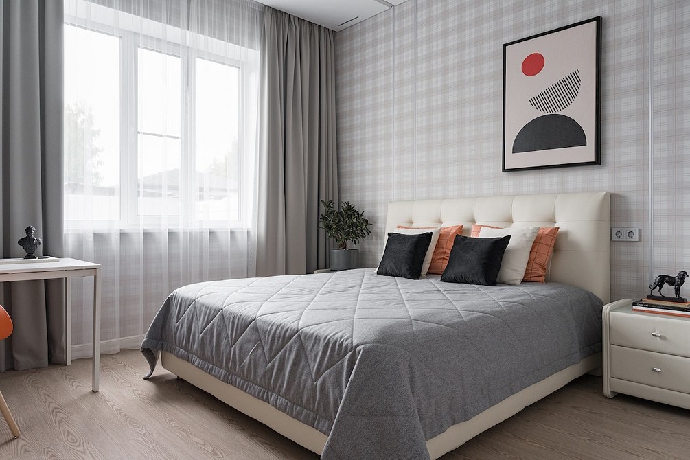 От чего лучше отказаться — от очевидно искусственных тканей, с сильным блеском, неприятных тактильно. Домашний текстиль должен быть привлекательным не только визуально, но и дарить приятные ощущения при прикосновении. Актуальны как гладкие ткани, так и фактурные, например, жаккард, лен, рогожка.