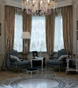 Дизайнеры считают этот вид штор наиболее сложным в исполнении. Императорские шторы помпезны и парадны.Хорошо будут смотреться в большом помещении с высокими потолками.