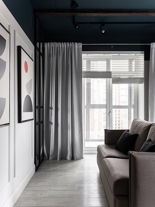 Лофт. Если вы поклонник индустриального стиля, то первоначально он вовсе не предусматривал никакого текстиля на окнах. Однако, современный дизайн стал мягче, и шторы на окнах в гостиной, по крайней мере, вполне допустимы.