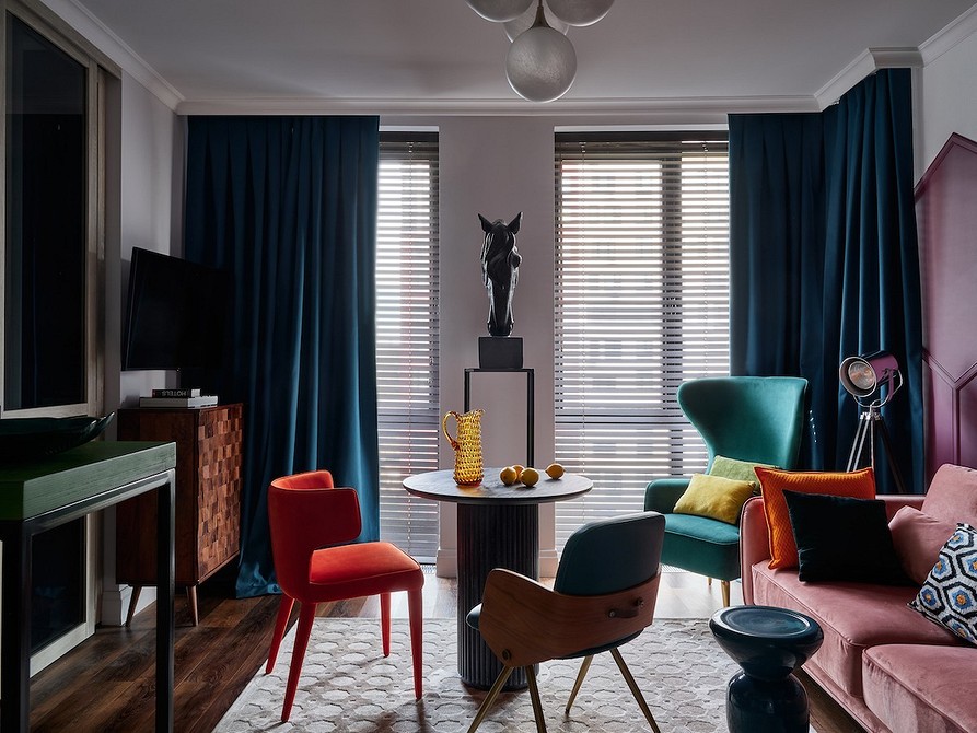 Популярны и другие натуральные цвета. Например, приглушенные, «пыльные» оттенки зеленого, синего, розового. Но это не значит, что нужно полностью отказаться от более ярких красок. В своих проектах дизайнеры реже, но все же используют такой текстиль. Чтобы он выглядел благородного и стильно, выбирайте сложные, глубокие тона.