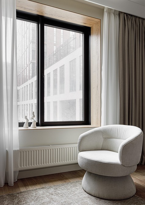 Часто и само количество текстильных слоев на окне сокращается до минимума: остается один тюль либо невесомые светлые занавески из хлопка и льна. Соло можно использовать даже тяжелые бархатные портьеры сдержанного цвета, свободно ниспадающие на пол. Это будет выглядеть минималистично.