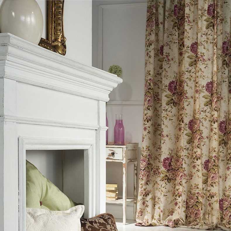 Деревенский интерьер говорит о близости к природе, поэтому шторы выбирают из натуральных тканей (льна, ситца) с цветочным орнаментом. Обычно это длинные полотна от потолка до пола.