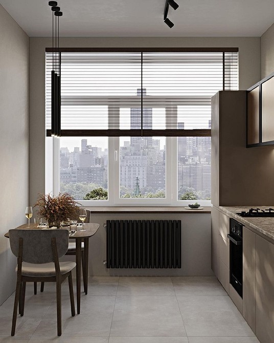 Обратите внимание, что размер оконного проема необходимо учитывать при выборе, а так же обращать внимание на высоту потолков в кухне.