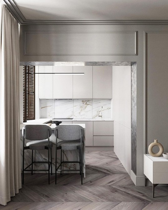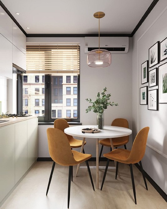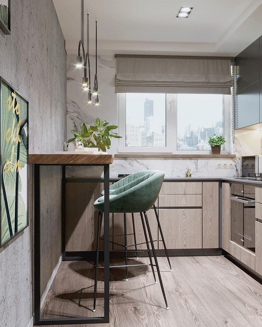 Прекрасно подходят для маленькой кухни в 9 кв. метров и больше. Уместны будут в интерьере модерн, хай-тэк или лофт.