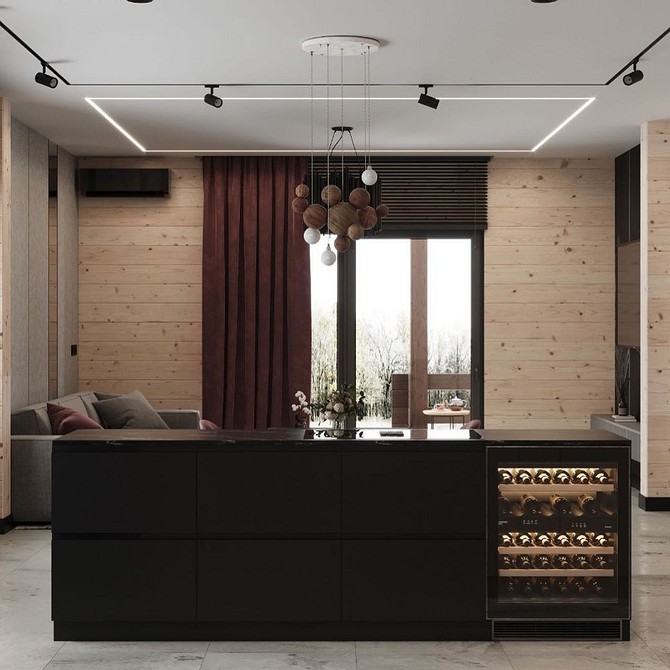Портьеры не уместны на маленькой кухне, а вот в просторной кухне-столовой, кухне-гостиной или студии могут быть необходимы как для декоративных целей, так и для полного затемнения зоны отдыха.