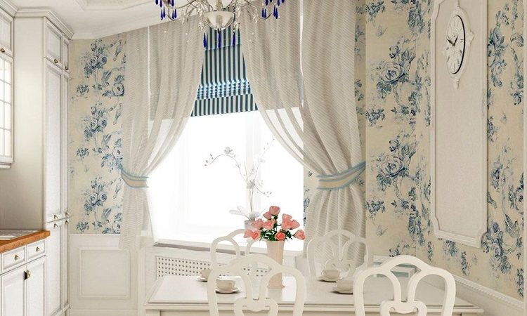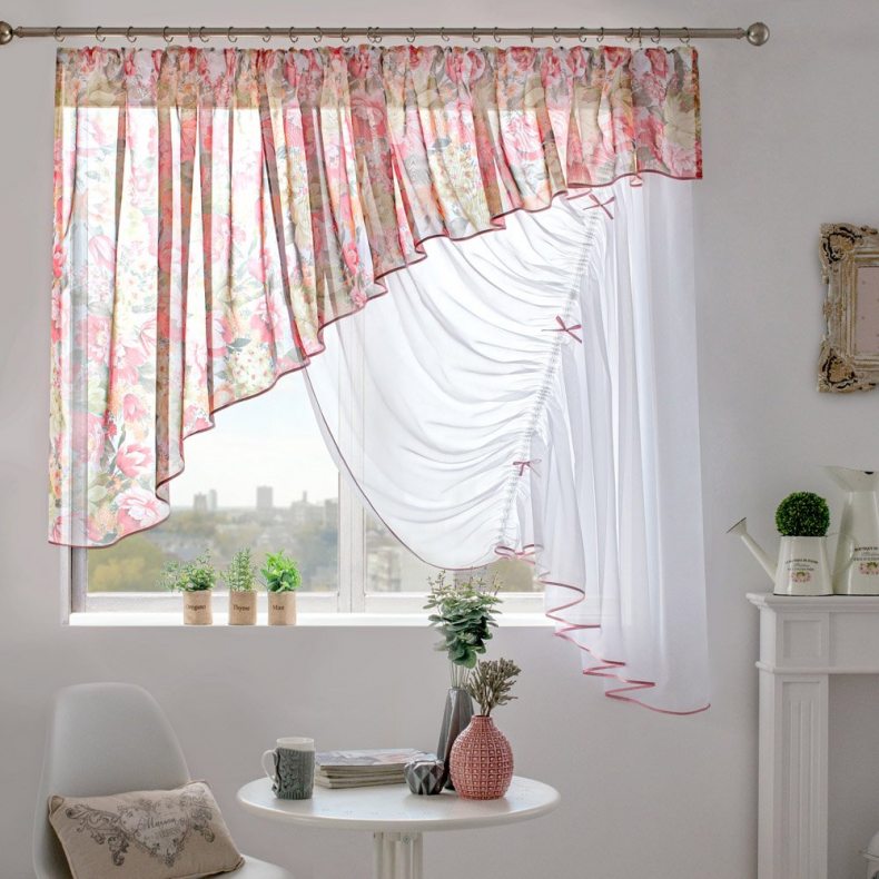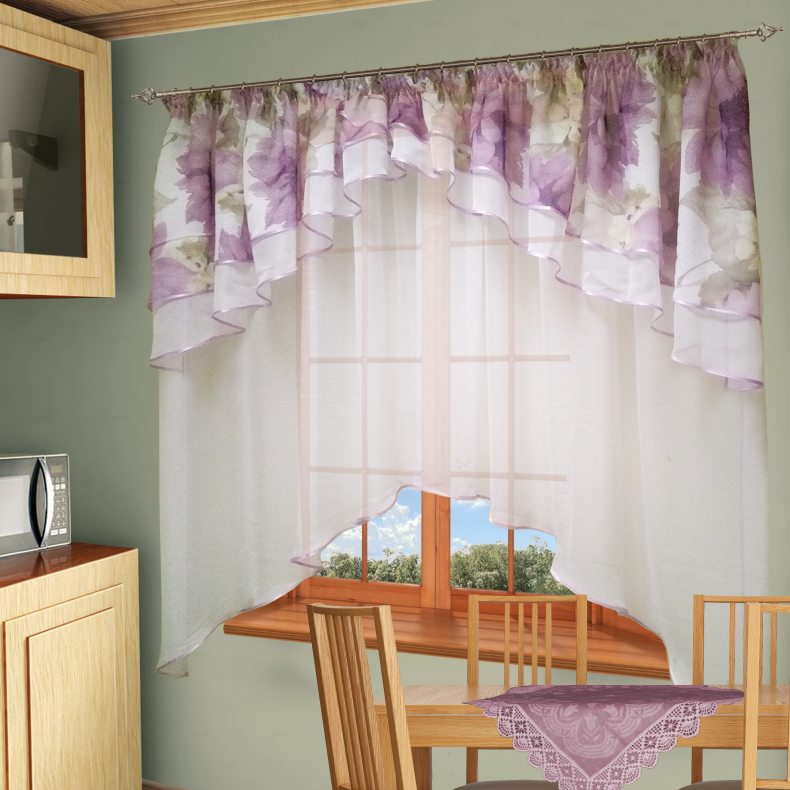 Преобладают светлые тона, несущие ноты умиротворения и спокойствия. Простые, незатейливые рюши и воланы подчеркивают легкость восприятия мира. В помещении кухни такие укороченные гардины создают милый уют сельского дома. Характерны ламбрекены и подвязки. Возможны кружевные вставки, отделка тесьмой.