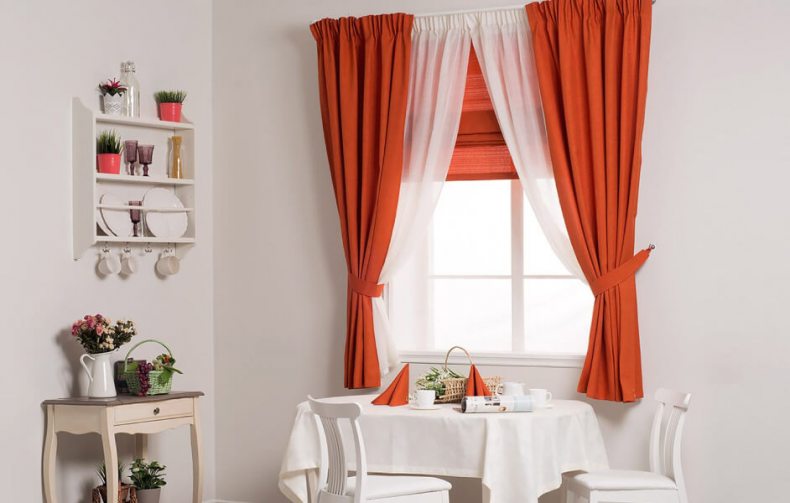 В средних и маленьких кухнях тяжелые плотные занавеси ни к чему.