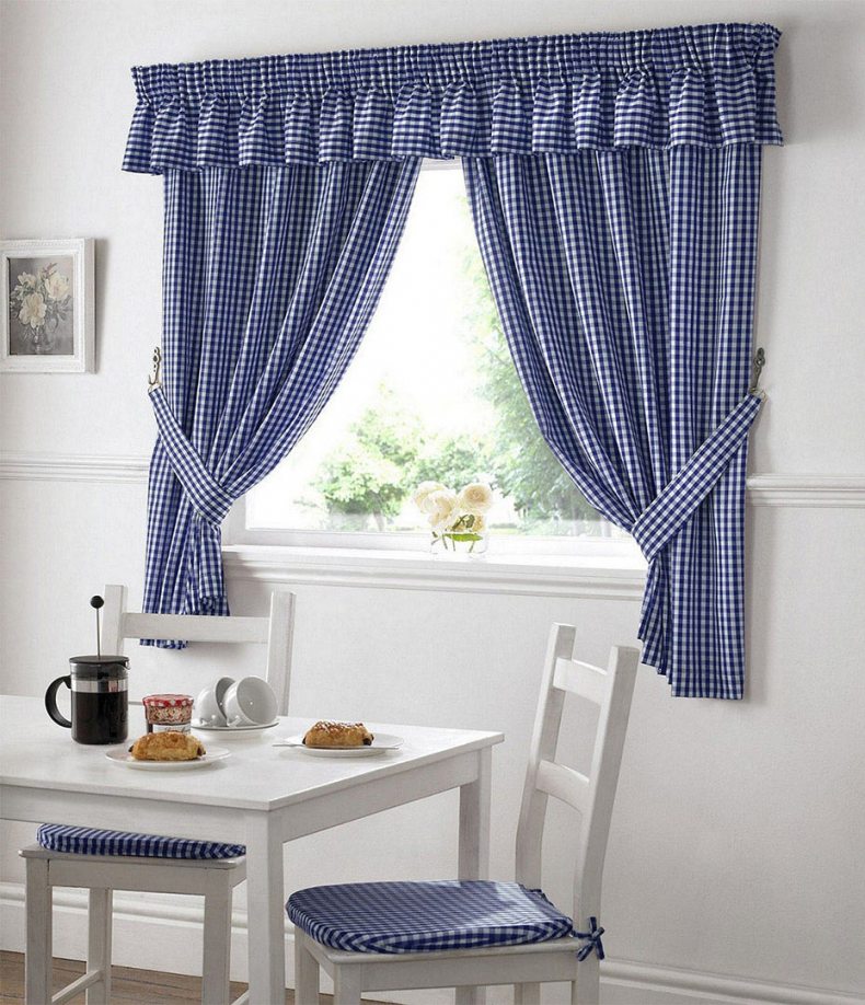 Короткие занавески со складками, ламбрекены придадут сходство с милым деревенским домом, таким уютным и родным. Полотенца и другие кухонные аксессуары можно выполнить из того же материала.