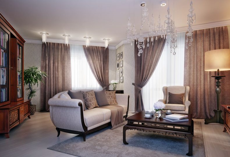 Мы знаем основные правила подбора занавесок и оформления окон в гостиной. Теперь можем переходить к рассмотрению правил подбора декора в соответствии со стилем помещения.