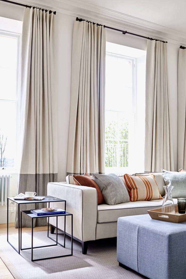 Если повесить шторы под самый потолок, можно добиться визуального увеличения высоты помещения