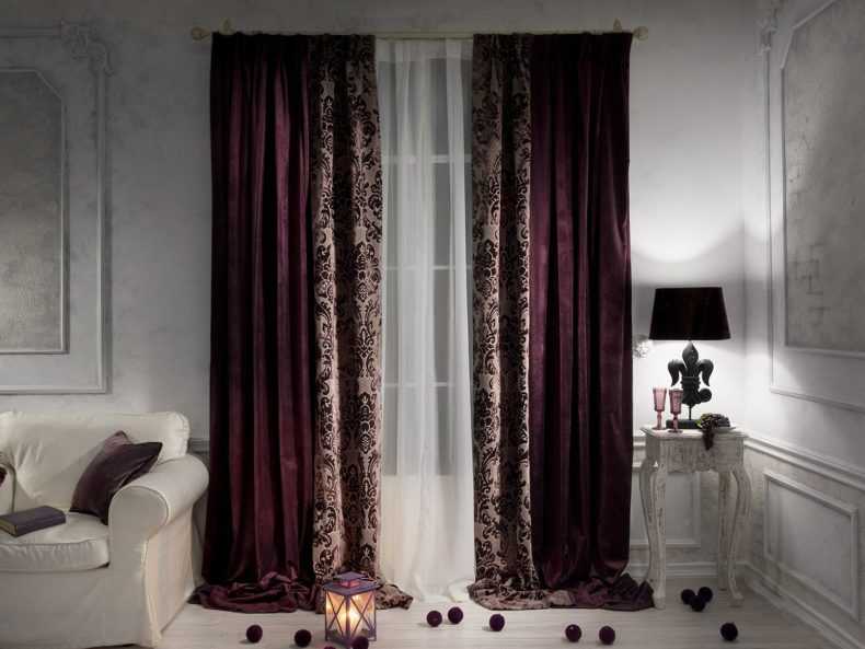 Использовать их в единственном числе не рекомендуется, хорошие варианты оформления штор могут содержать 2 оттенка и текстуры. Это тюль за бархатом и ламбрекены на верхней части.