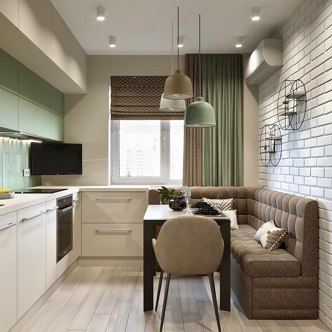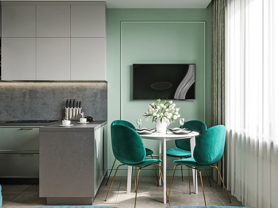 Для текстиля на кухне в стиле прованс, кантри или классике подойдут припыленные тона с уходом в серый. В современном интерьере очень свежо выглядит яркий акцент (лайм, аквамарин, мята) на нейтральном светлом фоне. Если вы хотите повесить зеленые шторы на кухню, фото ниже можно использовать как источник вдохновения.