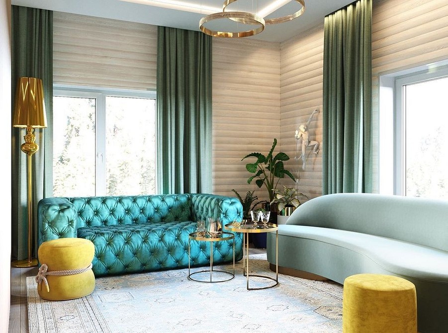 Нельзя ни в коем случае делать резкие переходы от одного тона к другому. Поскольку это будет выглядеть не слишком хорошо. Лучше всего использовать для комбинации занавески цвета морской волны.