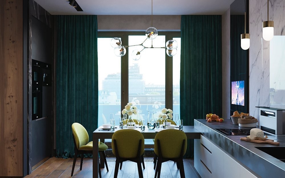 «Озеленение» интерьера — уверенный тренд последних лет. Чем больше времени мы проводим дома, тем больше хочется сделать пространство в четырех стенах свежим или, наоборот, успокаивающим. И тем, и другим эффектом обладает зеленый цвет. А чтобы окружить себя зеленью в стенах квартиры, не обязательно даже покупать цветы — достаточно обновить текстиль. Например, повесить новые занавески.Одна из главных особенностей этого цвета — его многогранность. В цветовом круге он расположен между желтым и голубым, и в зависимости от подтона может быть холодным или теплым. Вызывает он и разные ассоциации: от тропической яркости до прогулки в тихом лесу.