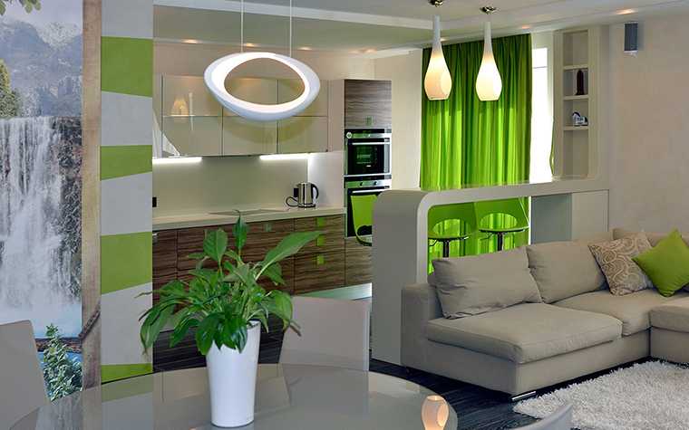 Фисташковый, салатовый, оттенок лайма. Это очень яркие и позитивные тона, которые способны поднимать настроение, поэтому рекомендуется использовать их в детской комнате, на кухне, в гостиной в современном стиле.
