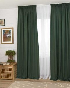 Самые востребованные зелёные гардины – классические. Их основное преимущество состоит в том, что они отлично вписываются в интерьер любой стилистики. А ещё они универсальны в использовании – их можно вешать на окна различного размера.