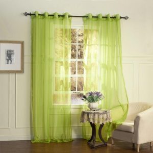 Остановив выбор на подобной палитре для обустройства комнаты, человек создаёт место для отдыха. А такой атрибут, как занавески зелёных оттенков, позволят зрительно придать пространству объёма. Однако их лучше дополнить белоснежным тюлем.